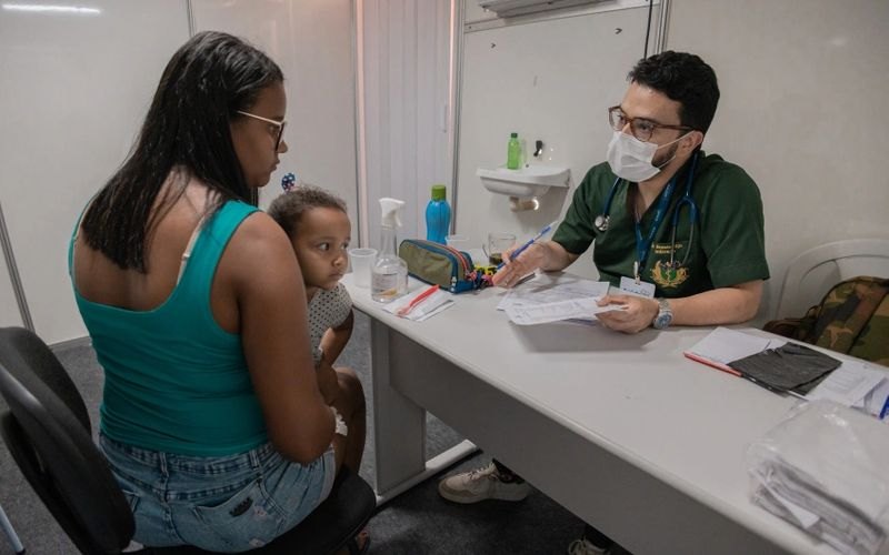 Saúde Infantil - Já os atendimentos de Saúde Infantil estarão concentrados no Residencial Maceió I (Cidade Universitária), com vacinação, atendimento pediátrico, enfermagem, oftalmologia, atendimento psicológico, coleta de exames, puericultura e encaminhamento às unidades de saúde para a realização do teste do pezinho e da orelhinha.