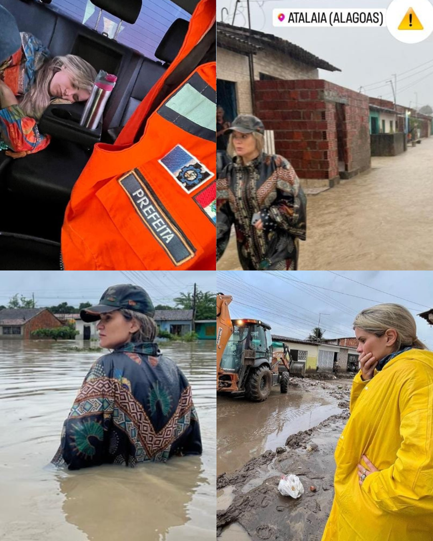 Em meio às chuvas que acontecem em Alagoas, que vem deixando famílias desabrigadas e desalojadas, a polêmica envolvendo fotos postadas pela prefeita de Atalaia, Ceci Rocha (MDB), ganhou repercussão negativa nas redes sociais. Internautas chegaram a acusar a gestora de 'posar' em meio ao caos vivenciado pela cidade, um das mais afetadas no estado.