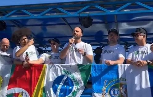 “Não tem diferença de um professor doutrinador para um traficante de drogas que tenta sequestrar os nossos filhos para o mundo do crime. Talvez o professor doutrinador seja pior”, disse Eduardo. Ainda em discurso afirmou que o Brasil caminha para a mesma direção da Venezuela. “A Venezuela é o país mais violento do mundo, e o Brasil vai voltar a caminhar nesse sentido. Infelizmente, vai roubar muita vida de inocente, porque os caras do Ministério da Justiça não querem dar o acesso à legítima defesa a todos nós”. Além de também fazer críticas à CPI que investiga os atos antidemocráticos do 8 de janeiro. “Na CPI do 8 de janeiro, vi pró-armas recebendo um ataque e pessoas tentando vincular o pró-armas ao 8 de janeiro. Sabe o que isso significa? Que vocês estão fazendo um excelente trabalho”, ressaltou.