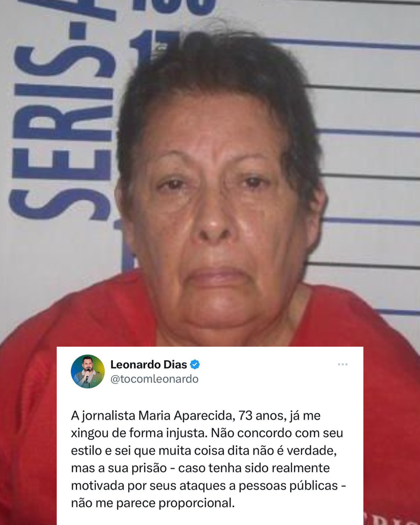 Por meio das redes sociais, o vereador maceioense Leonardo Dias comentou que acha a prisão — se dada somente pelos motivos apresentados publicamente — desproporcional a acusação. " A jornalista Maria Aparecida, 73 anos, já me xingou de forma injusta. Não concordo com seu estilo e sei que muita coisa dita não é verdade, mas a sua prisão - caso tenha sido realmente motivada por seus ataques a pessoas públicas - não me parece proporcional.", escreveu Leonardo.
