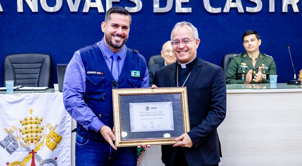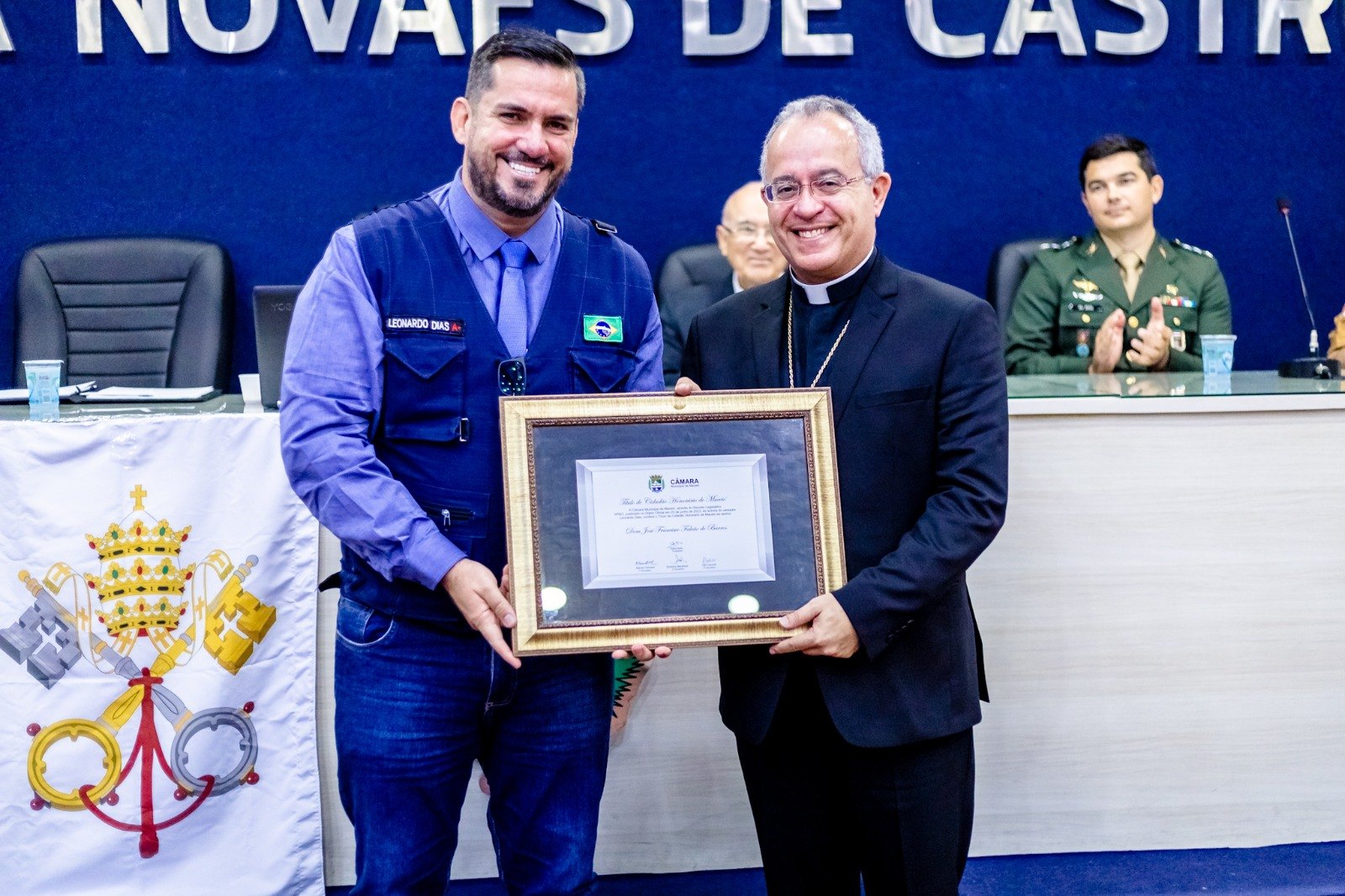 Leonardo Dias entrega Título de Cidadão Honorário ao bispo-auxiliar do Ordenariado Militar do Brasil