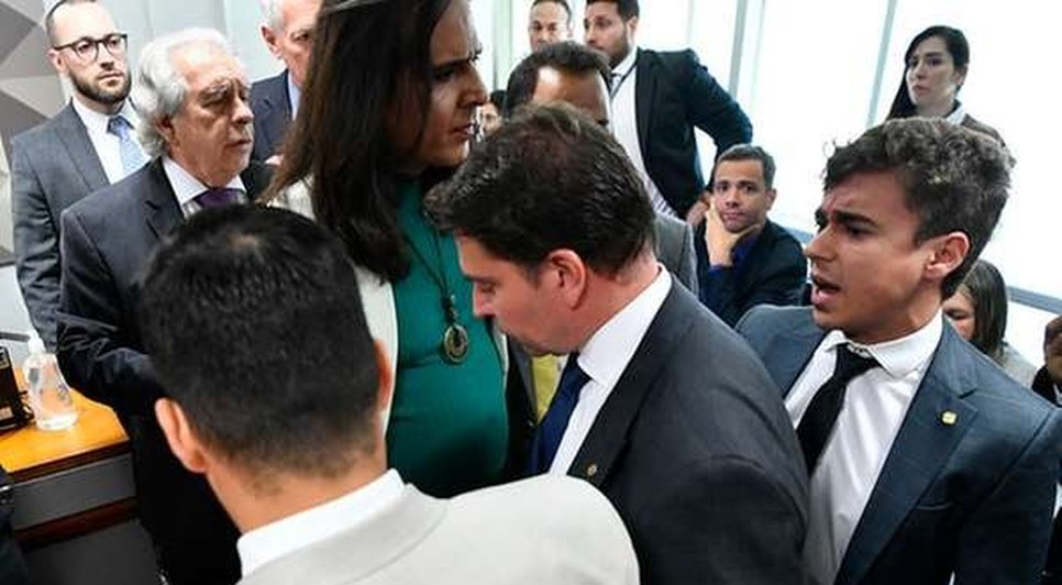 Duda Salabert e Nikolas Ferreiras discutem durante se trocam empurrões durante reunião da CPMI sobre o dia 8 de janeiro