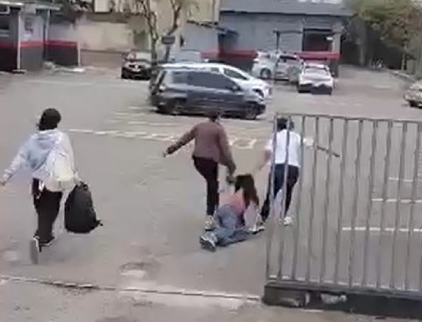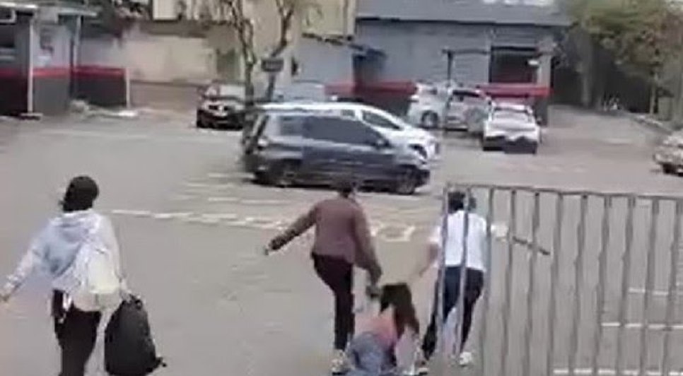 Nas imagens é possível ver ainda duas mulheres arrastando o suspeito pelo chão até a delegacia do 27º Batalhão da Polícia Militar.