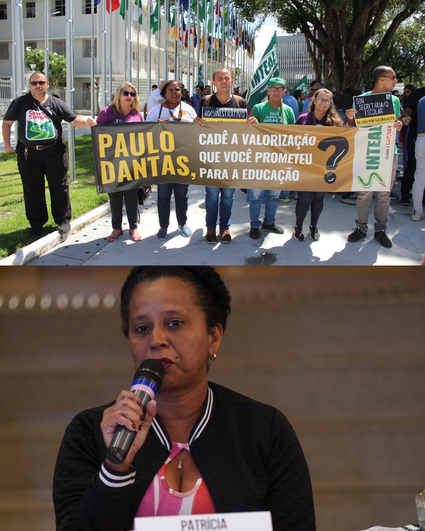 A diretora também reclamou sobre as condições de trabalho, afirmando que os profissionais da classe trabalham sobrecarregados nas escolas da rede pública estadual. Além dos professores, outros funcionários, como as merendeiras, estariam atuando em condições precárias.