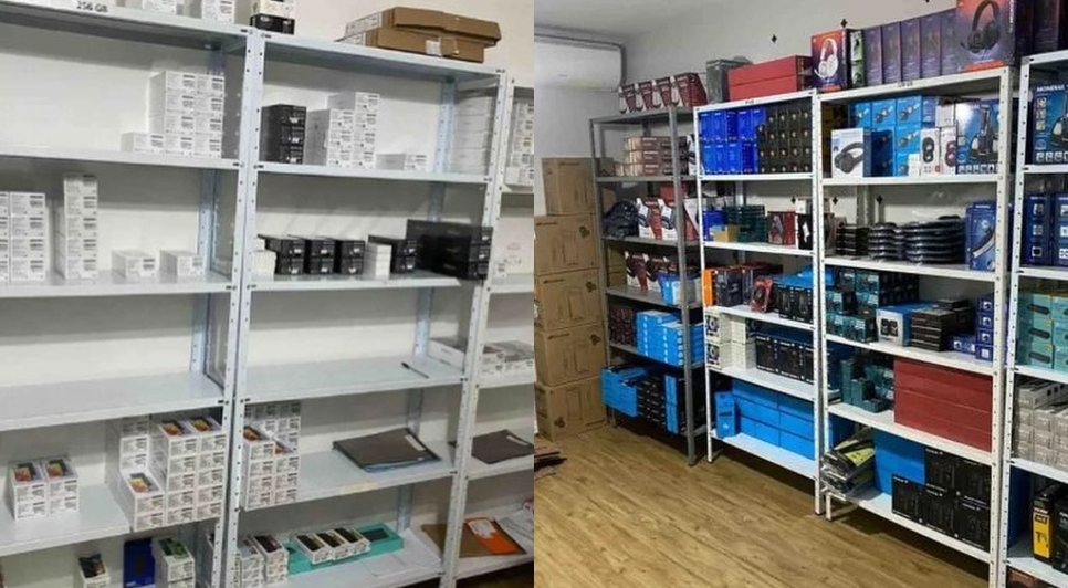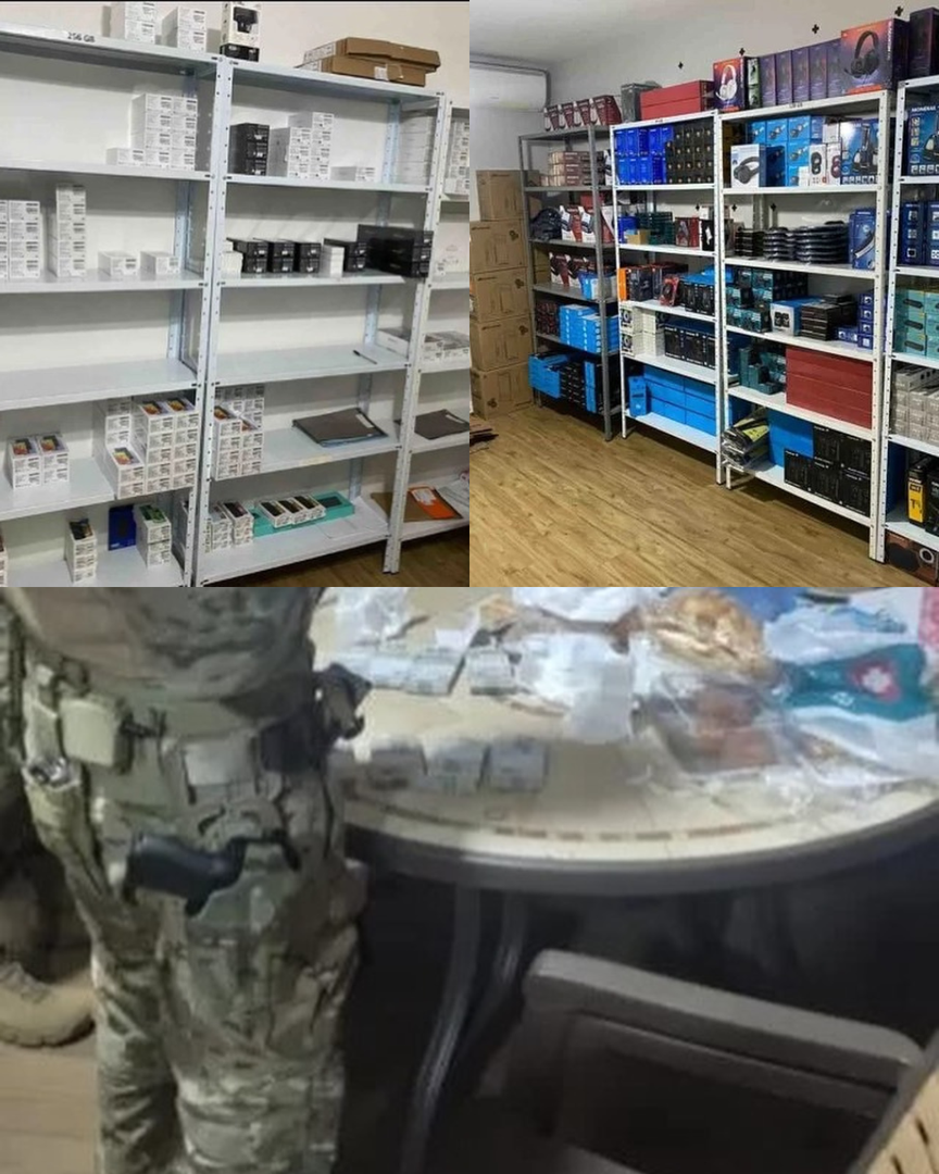 A Polícia encontrou prateleiras lotadas de produtos como smarphones — todos de modelos de alto padrão e em sua maioria, Iphones — além de Macbooks, granadas, Ipad e um HD externo.
