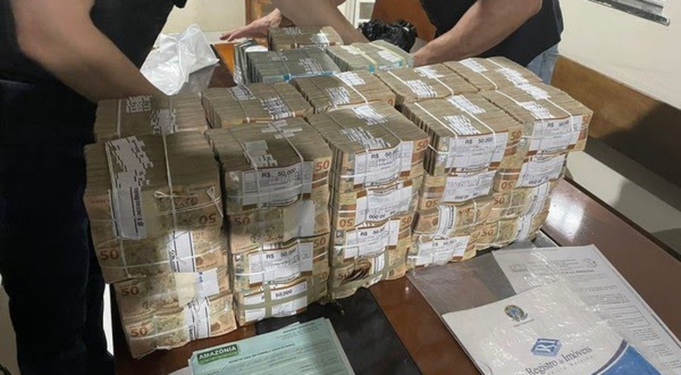 Uma imagem feita durante a ação registrou a pilha de notas de R$ 50 e de R$ 100. Os fardos de dinheiro, que estavam escondidos dentro de sacos de lixo, foram encontrados pela PF nos fundos da casa do irmão de um empresário suspeito de participar do esquema, em Boa Vista.