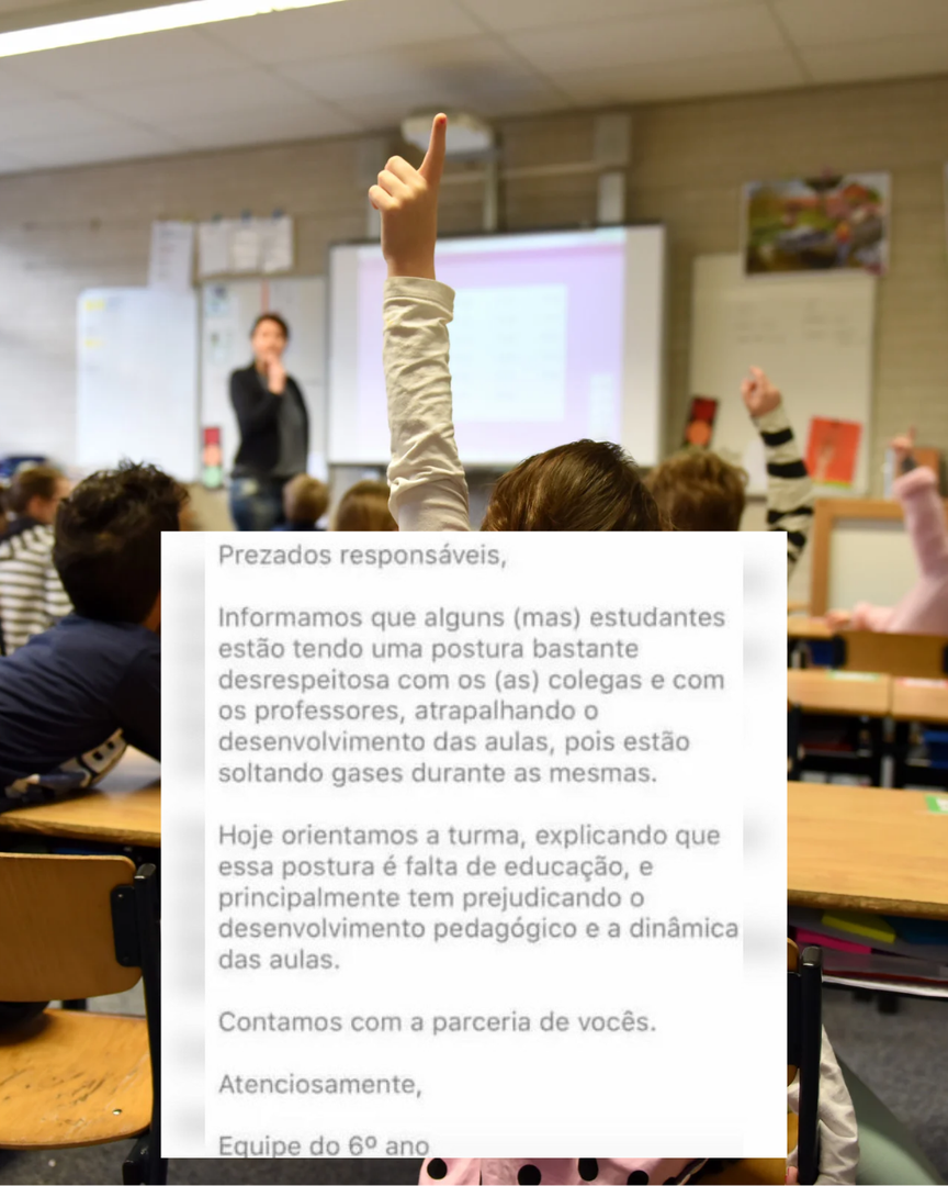 Escola solicita ajuda dos pais para educarem os filhos a não soltarem pum na sala de aula