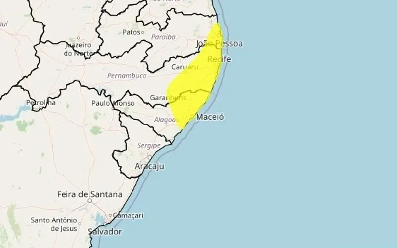 O Inmet (Instituto Nacional de Meteorologia) emitiu, na manhã deste domingo (20), um novo alerta amarelo de acumulado de chuvas para 49 municípios Alagoanos, incluindo a Capital. O aviso é válido até hoje, às 18h.