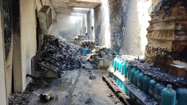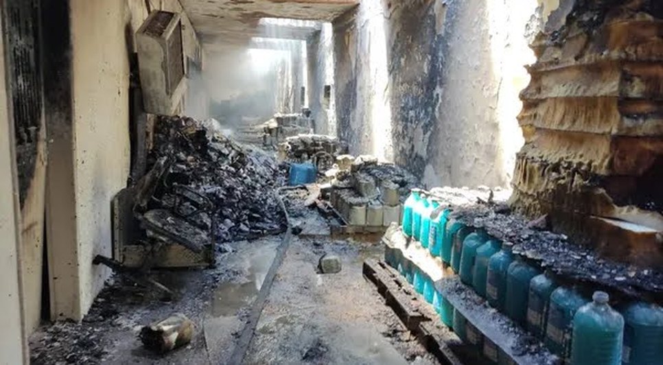 Imagens que circulam nas redes sociais mostram o fogo saindo pelo telhado do imóvel e pessoas correndo do lado de fora. O fogo se concentrou no almoxarifado pois lá havia muito material inflamável.