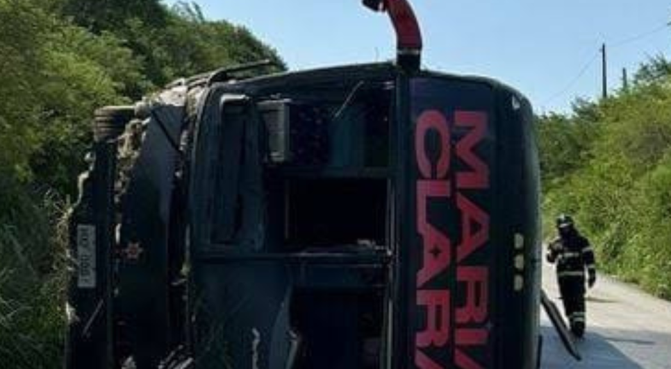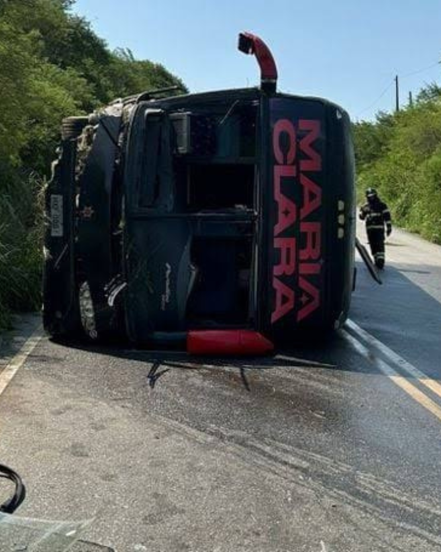 Ônibus de cantora Maria Clara tomba em rodovia de Palmeira dos Índios em Alagoas