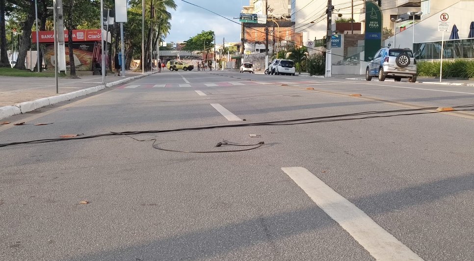 Avenida Antônio Gouveia na Pajuçara é interditada após queda de fios
