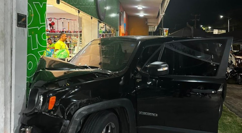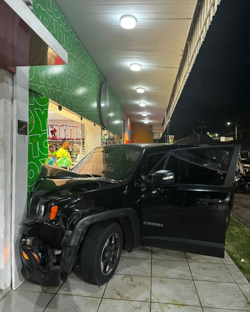 Um carro Jeep colidiu em uma loja de brinquedos, na noite desse domingo (03), no bairro da Ponta Verde, em Maceió. O acidente não resultou em feridos.