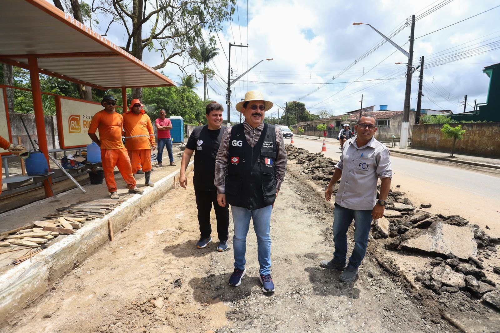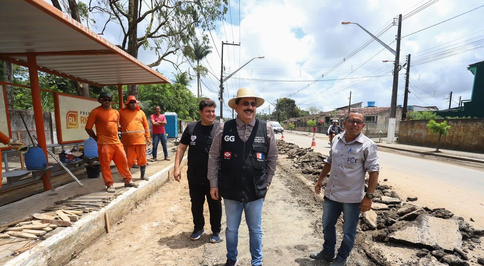 Prefeito Gilberto Gonçalves e Secretário Carlos Gonçalves acompanham obras de pavimentação na principal avenida de Rio Largo
