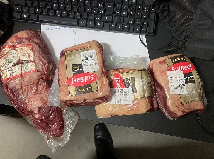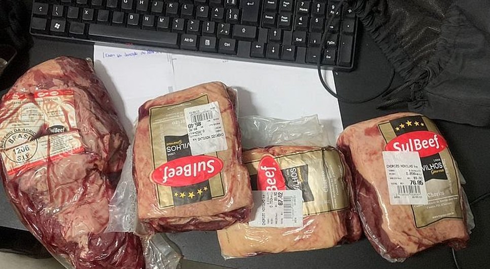 O homem de nacionalidade espanho-la foi abordado pelos seguranças patrimoniais quando tentava sair do estabelecimento com cercade R$300 em carnes.