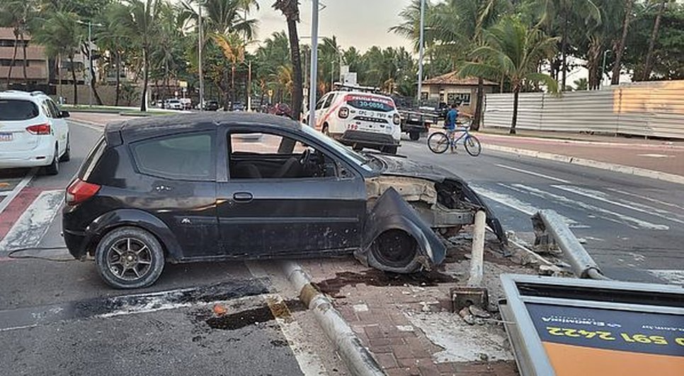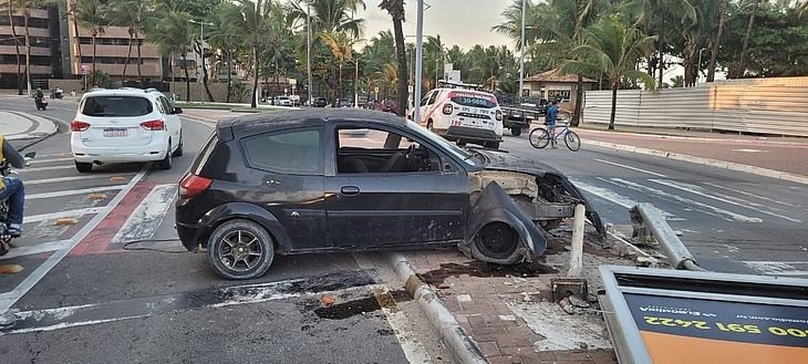 Motorista embriagado perde controle e colide com totem publicitário na orla de Jatiúca, em Maceió