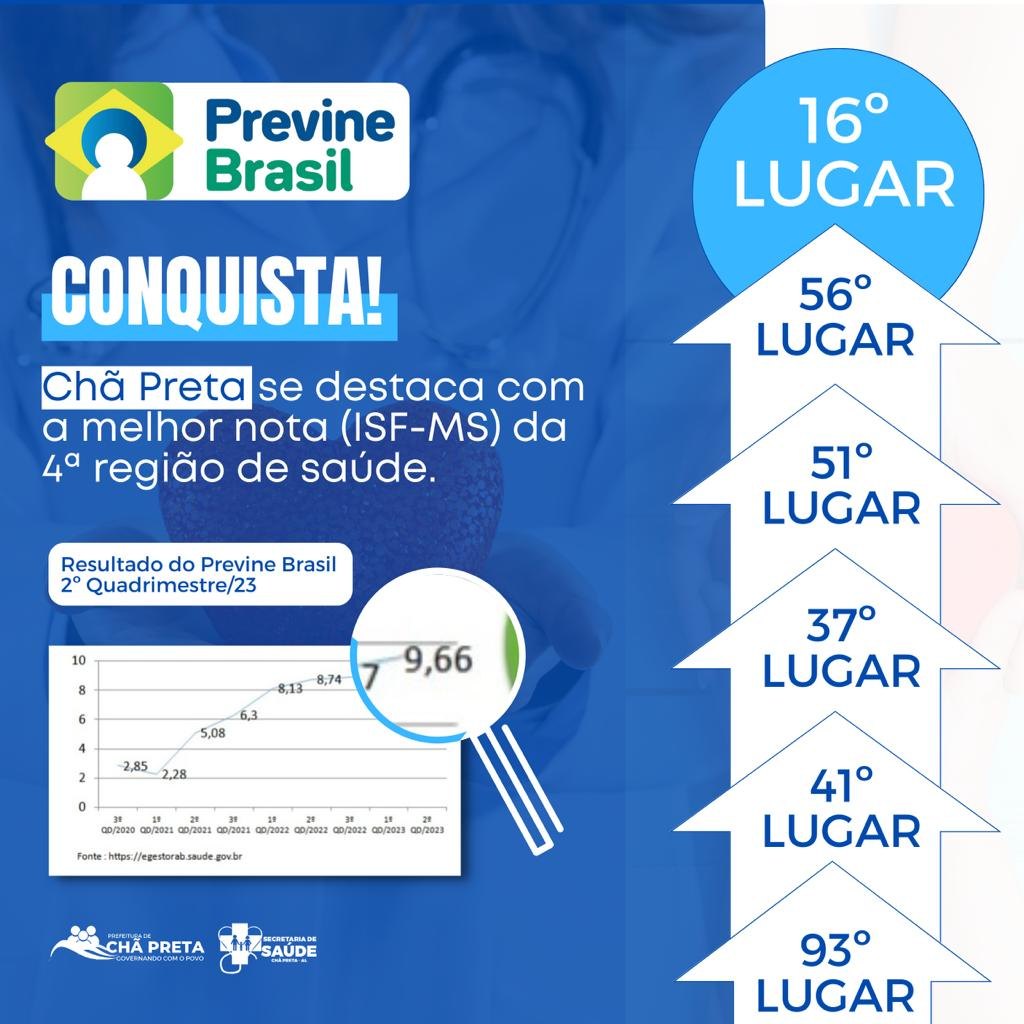 O Ministério da Saúde divulgou o resultado do segundo quadrimestre de 2023, e o município de Chã Preta-AL avançou no desempenho do Previne Brasil.