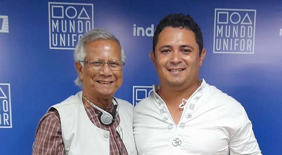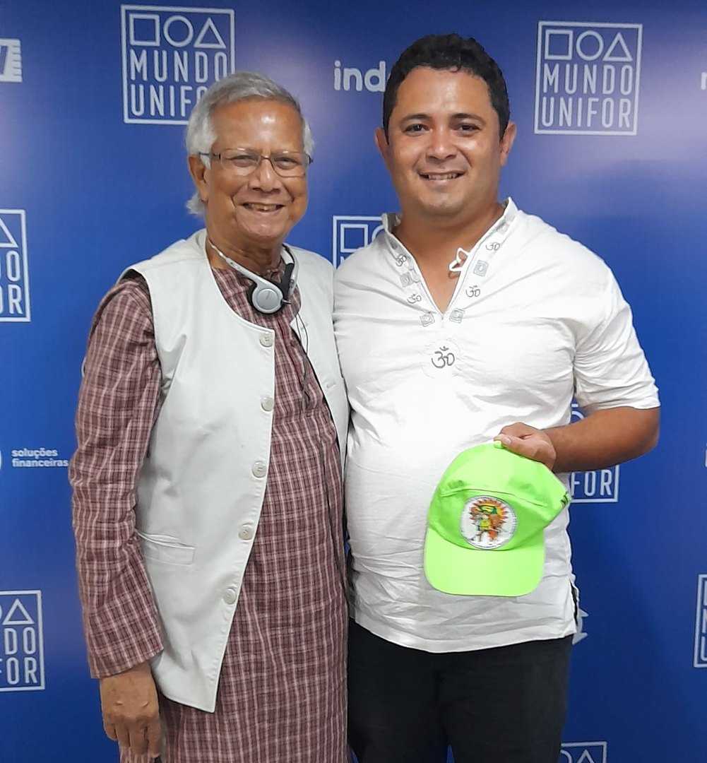 Muhammad Yunus, conhecido como o "banqueiro dos pobres", é famoso por seu trabalho na criação da metodologia de microcrédito, que beneficia pequenos empreendedores e pessoas em situação de vulnerabilidade. Durante o encontro em Fortaleza, Yunus elogiou o trabalho de Adriano Ferreira na criação do Banco FUNPET, o primeiro banco brasileiro a buscar uma economia de "zero pobreza, zero desemprego e zero emissões de carbono".