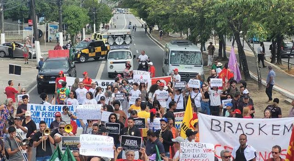 Na manhã de ontem(06), moradores dos bairros afetados pela mineração da empresa foram para a Avenida Fernandes Lima, uma das principais da capital alagoana e levantaram faixas contra a empresa e cobrando providências pelo ocorrido. A escavação das minas, realizada pela Braskem, gerou um afundamento no solo que já deixou mais de 60 mil pessoas desabrigadas, por terem sido retiradas de suas residências que se encontravam nas zonas de risco.