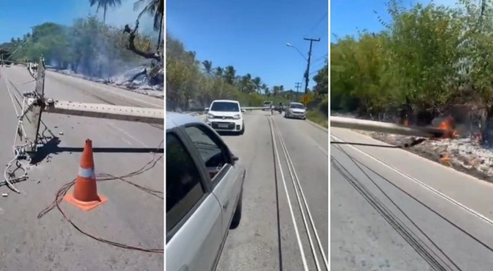 Os motoristas que utilizaram a AL-101 Norte, nas proximidades da Praia da Sereia, em Maceió, lideram com alguns problemas na manhã deste domingo(07). Dois postes caíram na estrada, possivelmente por causa de um incêndio que atingiu a vegetação. Ninguém se feriu.