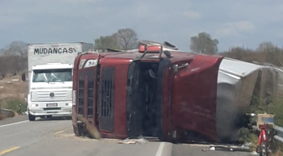 Na noite desta terça-feira (9), um caminhão transportando produtos do Mercado Livre tombou na BR-423, em Ouro Branco, interior de Alagoas. Parte da carga foi saqueada por populares, no entanto, a ação foi impedida após a chegada da Polícia Rodoviária Federal (PRF) e da Polícia Militar.