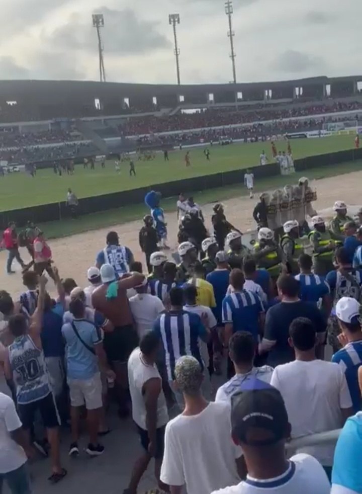 Mascote do CSA se irrita com o resultado e discute com os jogadores durante partida do Campeonato Alagoano
