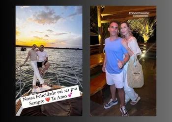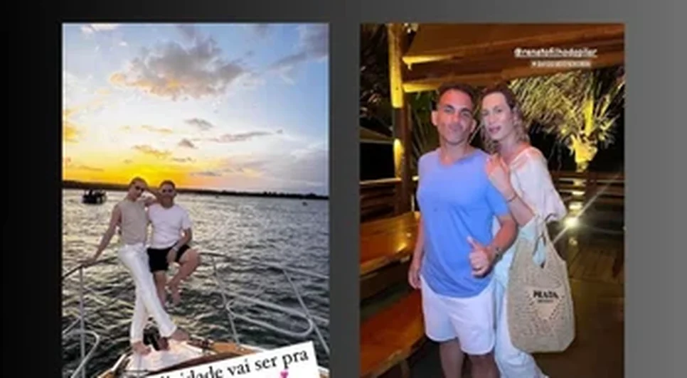 Em uma das imagens, capturada ao final da tarde em um barco, uma legenda romântica diz: "Nossa felicidade vai ser pra sempre. Te amo". Em outra foto, Renato Filho aparece descontraído com sua acompanhante misteriosa, indicando a localização como sendo um bar na ilha famosa.