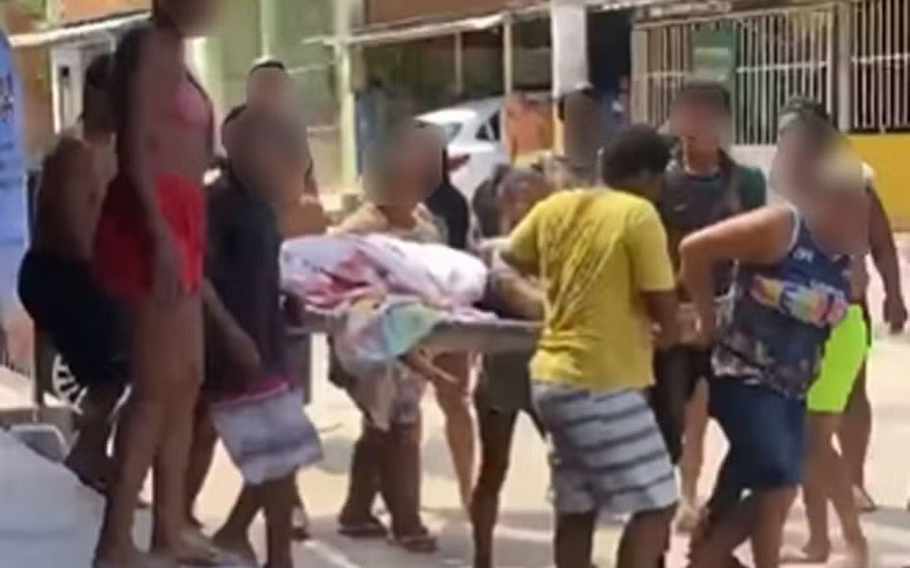 Imagens registradas por moradores do Complexo do Alemão mostram o momento em que as pessoas improvisaram macas para transportar os suspeitos pelas ruas da comunidade.