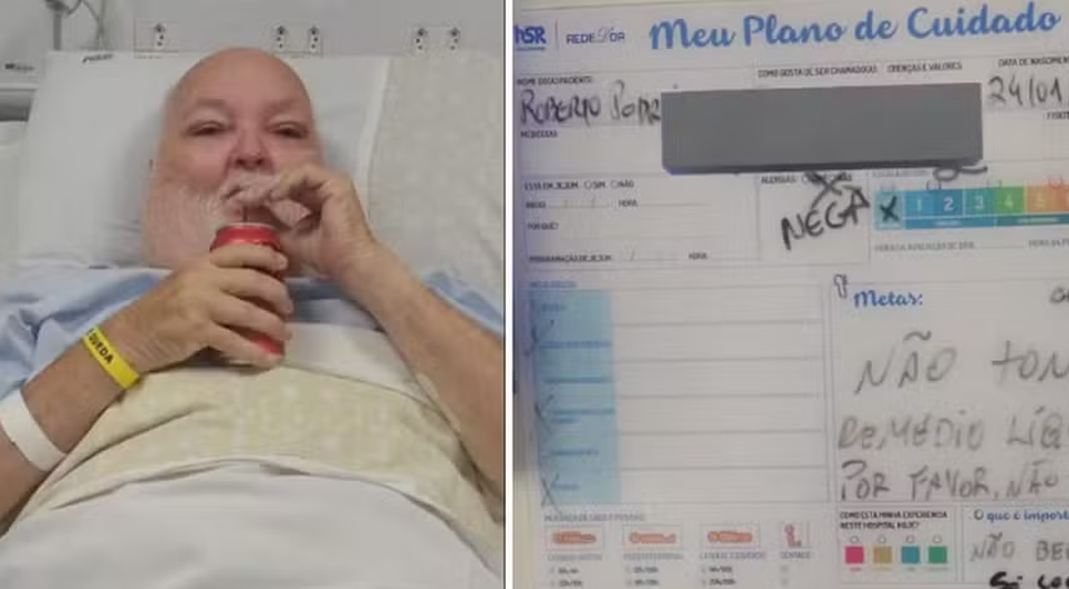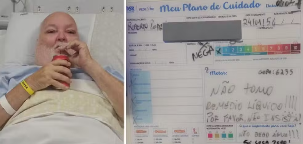 Roberto Pedreira, de 70 anos, que estava internado em um hospital particular da Bahia, viralizou nas redes sociais após deixar um recado inusitado aos enfermeiros, escreveu um bilhete dizendo que não bebia água, apenas Coca-Cola zero.