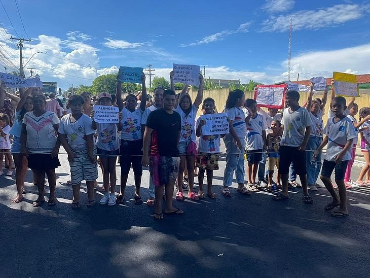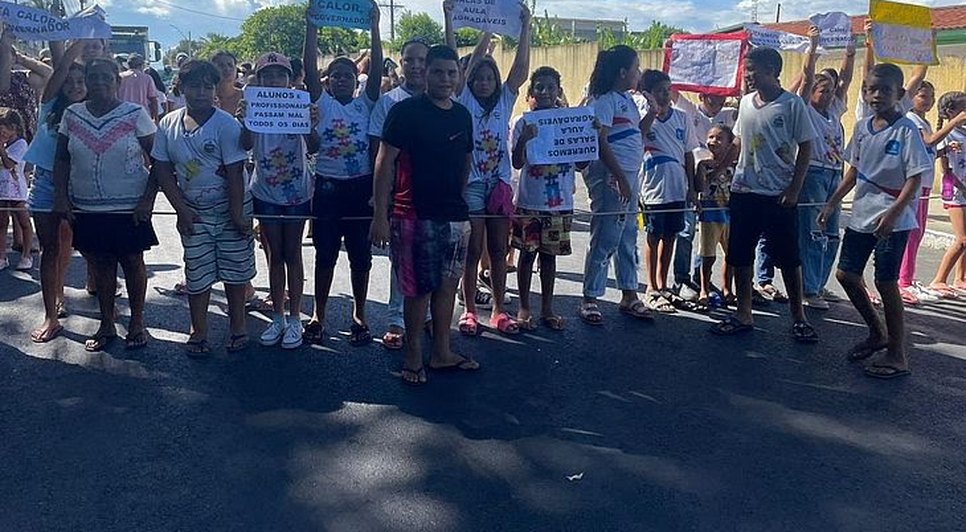 Calor: alunos bloqueiam avenida e pedem ar condicionado em escola estadual, em Chã de Bebedouro