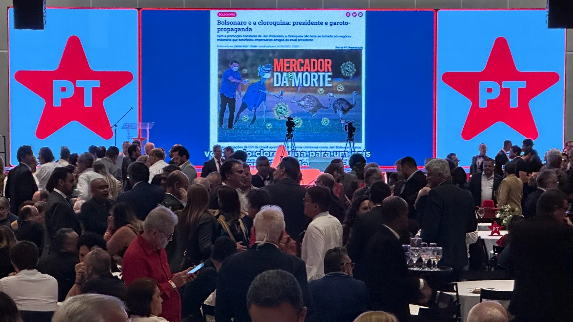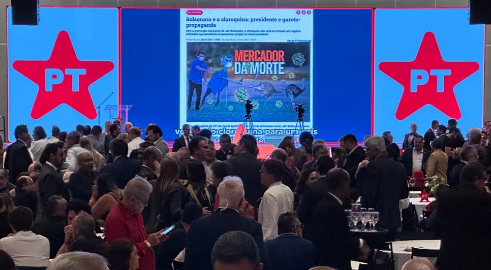 O presidente discursou por quase 13 minutos. O telão do evento exibiu reportagens sobre o ex-presidente Jair Bolsonaro (PL) e, em certos momentos, críticas ao ex-chefe do Executivo, como uma foto sua a acompanhada da frase "mercador da morte".