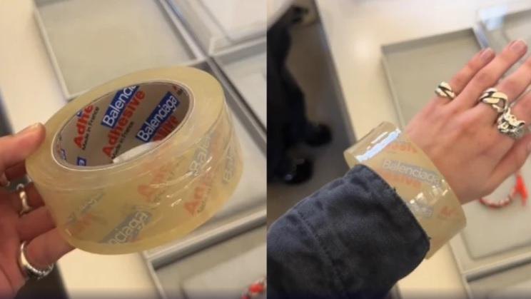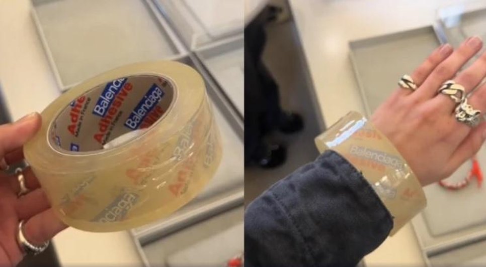 Apresentado ao público no Paris Fashion Week, o novo bracelete da marca é um rolo de fita adesiva para a coleção outono/inverno 2024.
