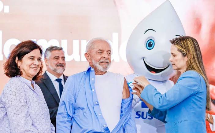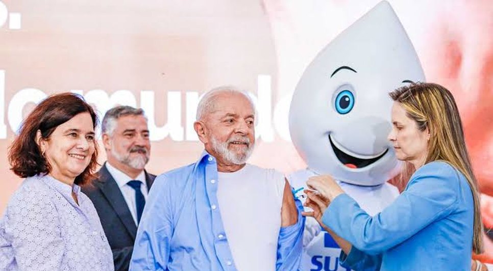 Durante um evento realizado hoje (segunda-feira, 08) no Palácio do Planalto, o presidente Lula, de 78 anos, tomou uma dose da vacina da gripe. A imunização é disponibilizada gratuitamente através do SUS e é indicada para maiores de 60 anos de idade. O evento contou com a presença da ministra da Saúde, Nísia Trindade, e foi acompanhado também pelo Zé Gotinha, símbolo histórico de campanhas para imunização.