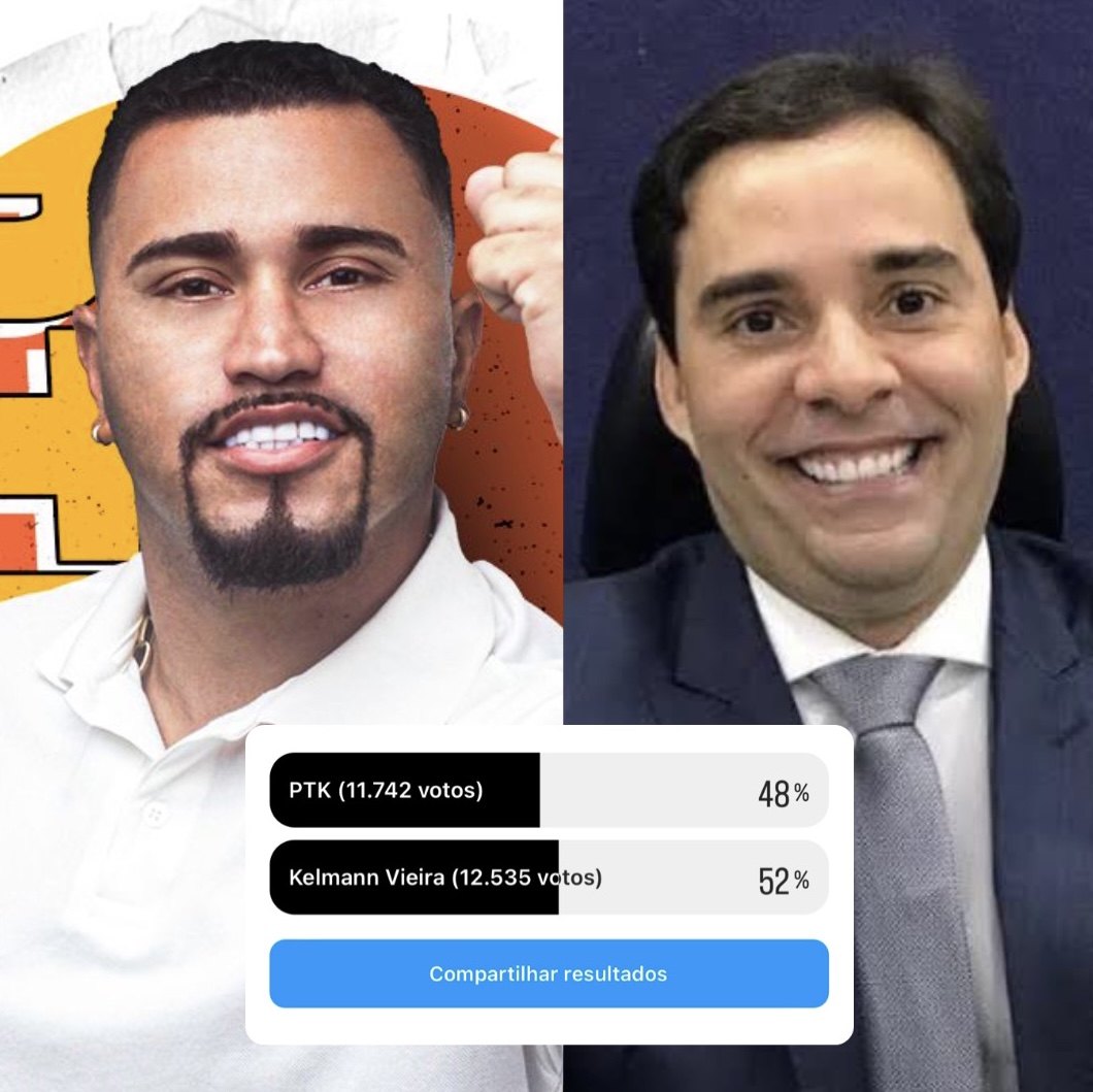 Após quase duas semanas de enquetes, foi registrado durante a disputa entre o delegado de polícia Civil, vereador Kelman Vieira e o empresário e Influencer, PTK(PP), a maior votação já registrada, superando todas os números de enquetes já realizados em Alagoas.