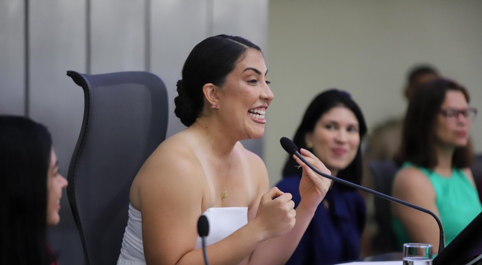 “Eu sou uma mãe atípica e mãe solo, e o peso da responsabilidade desse cuidado integral é muito difícil. Encontrar empregos que sejam flexíveis com os horários para gente que tem o cuidado do lar e dos filhos quase como profissão. Por mais amor que eu tenha aos meus filhos, essa ainda é uma realidade que precisa ser transformada”, disse a Luana Rodrigues, representando o Grupo de Famílias Atípicas Empreendedoras.