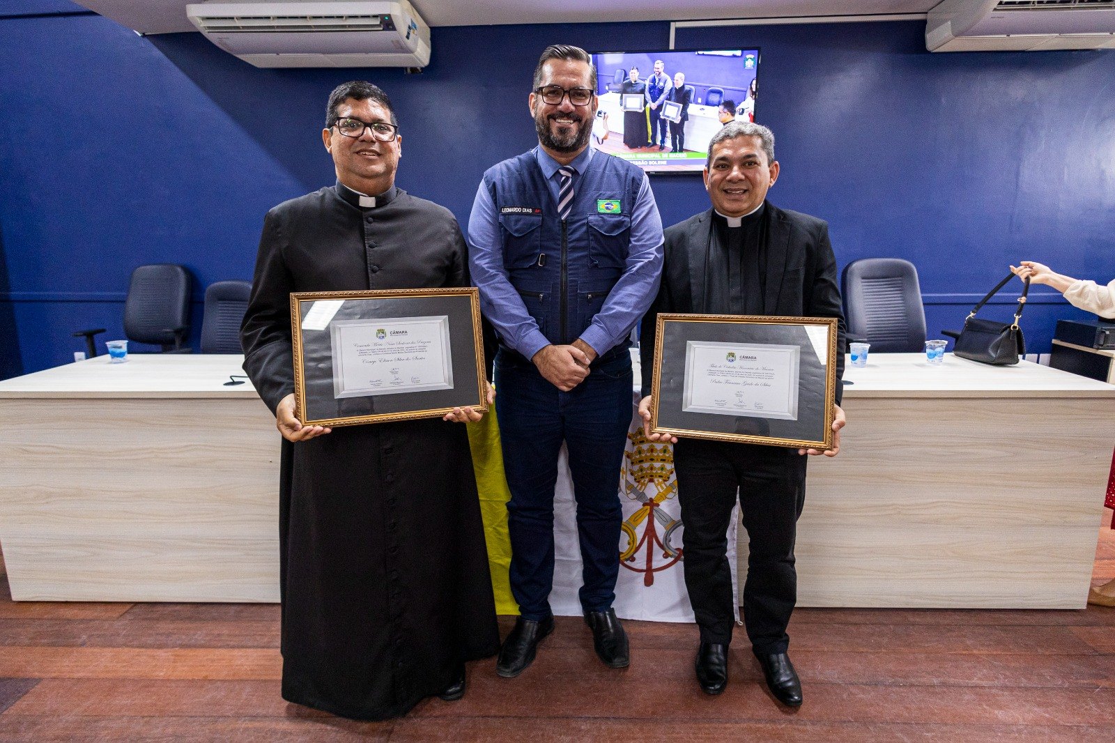 Leonardo Dias entrega honrarias a cônego Elison Silva e padre Francisco Guido