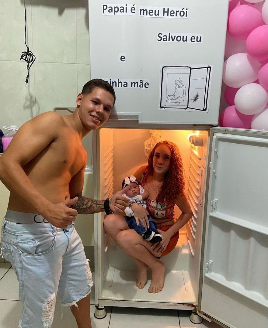 Nesta semana, o casal postou fotos nas redes sociais para comemorar um mês de vida da pequena Maria Cecília e usou uma geladeira para fazer as imagens.
