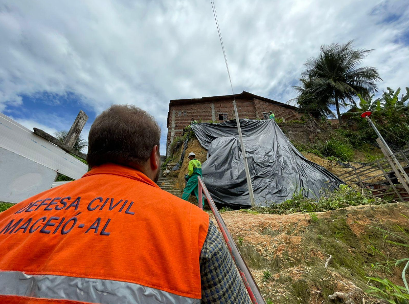 A Defesa Civil de Maceió conduz o trabalho de aplicação de lonas em encostas de toda a capital. Somente em 2024, desde o mês de janeiro, 110 pontos já foram contemplados e isto tem como resultado, aliado às obras de engenharia e proteção de encostas, uma redução significativa de ocorrências registradas.