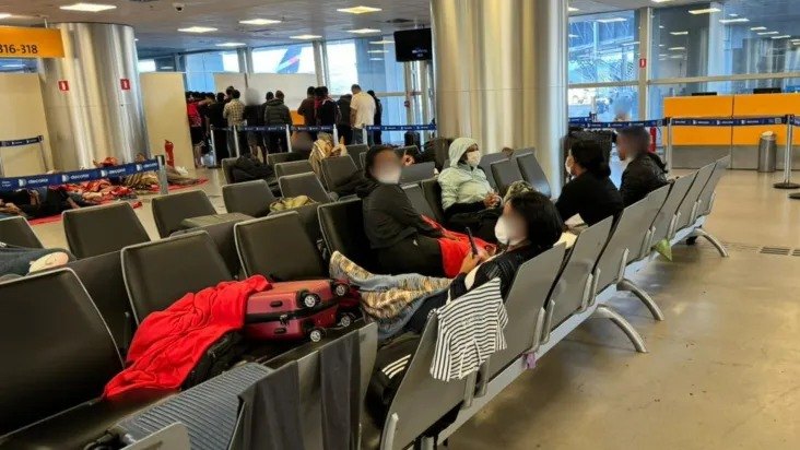 Segundo informações divulgadas pelo Ministério Público Federal (MPF), mais de 200 pessoas que vieram da Índia e de países do continente africano, estão abrigadas provisoriamente no Aeroporto Internacional de Guarulhos, em São Paulo, esperando que sejam tomadas as devidas providências para formalizar os pedidos de refúgio no Brasil. Até ontem(quarta-feira, 12), haviam quase 400 pessoas nessa situação, que o órgão considera a situação uma nova crise humanitária.