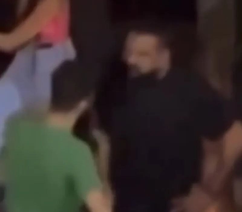 No vídeo, dois homens, um de verde e outro de preto, aparecem discutindo e trocando agressões físicas, levando um deles a sacar uma arma em direção ao outro, causando pânico.