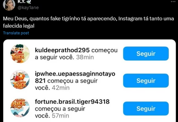 Contas vinculadas ao Fortuner Tiger, mais conhecido no Brasil como “jogo do tigre” ou “jogo do tigrinho”, está causando reclamações para os usuários do Instagram devido a vários perfis que têm seguido as pessoas. Os nomes criados para as contas do jogo seguem um padrão com telefones internacionais, fotos de perfis com o desenho do tigre e usuários complicados.