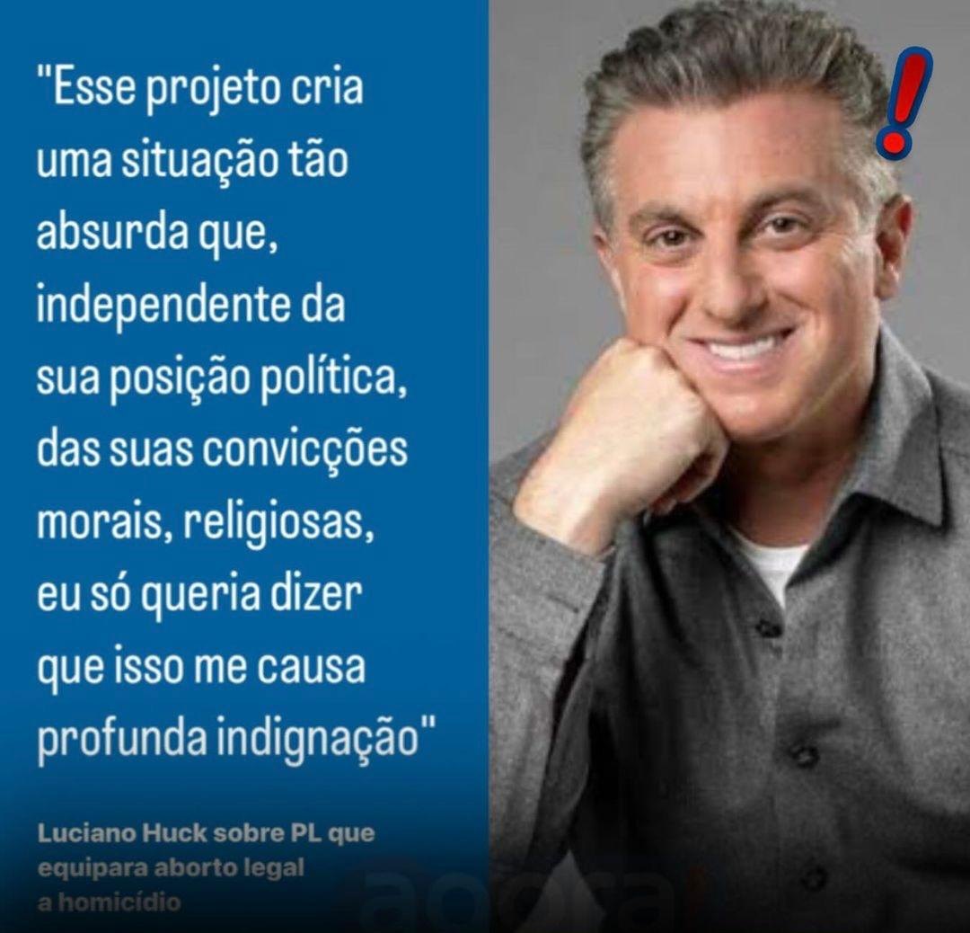 O apresentador Luciano Huck se manifestou sobre o projeto de lei 1904, que restringe o ab0rto legal em casos de estupr0, durante o Domingão com Huck (Globo). Ele se posicionou contra o PL e disse estar ao lado de todas as mulheres que já sofreram um es7upro e que “não devem ser vítimas de injustiça”.
