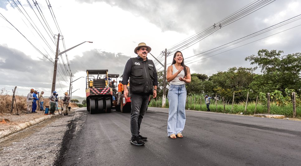 Prefeito Gilberto Gonçalves e Deputada Gabi Gonçalves fiscalizam pavimentação asfáltica da extensão da Avenida Jesus Cristo em Rio Largo