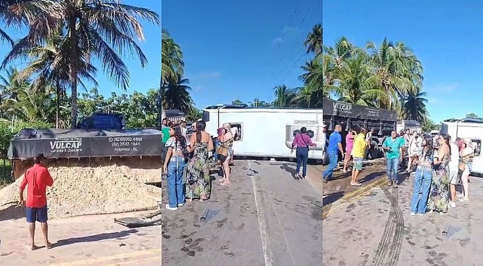 Na manhã desta sexta-feira(28), duas pessoas morreram e outras três ficaram feridas em um acidente entre um ônibus e uma carreta em Coruripe, no interior de Alagoas.