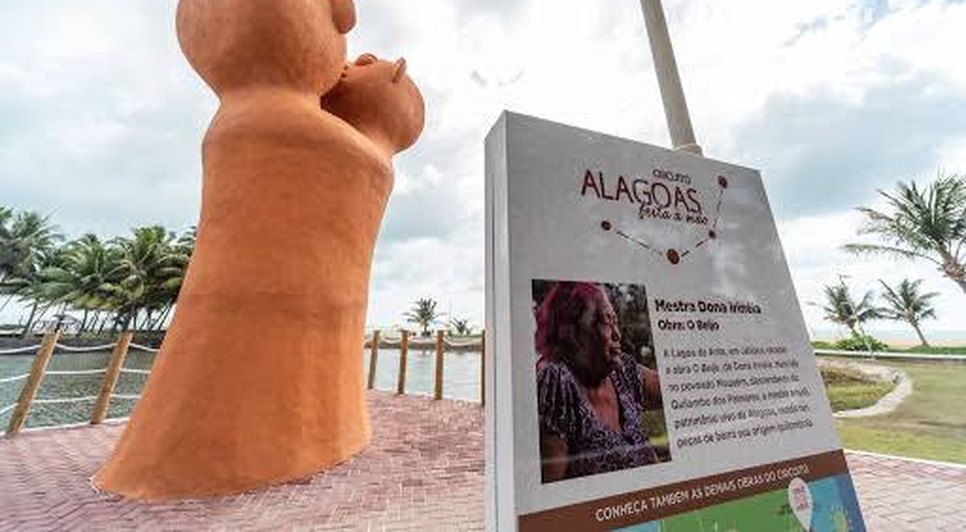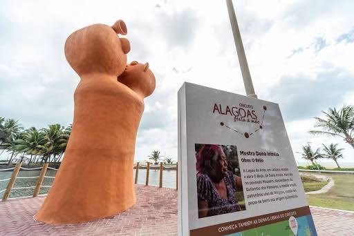 Sobre a escultura: o monumento tem seis metros de altura e foi inaugurada em 2018, como parte das comemorações do Circuito Alagoas Feita à Mão. A réplica de "O Beijo", é uma das obras mais expressiva da mestra Irinéia Rosa Nunes da Silva, uma das mais reconhecidas artistas da cerâmica popular. Ela é feita de isopor naval e fibra de vidro, material resistente ao sol, chuva e maresia.