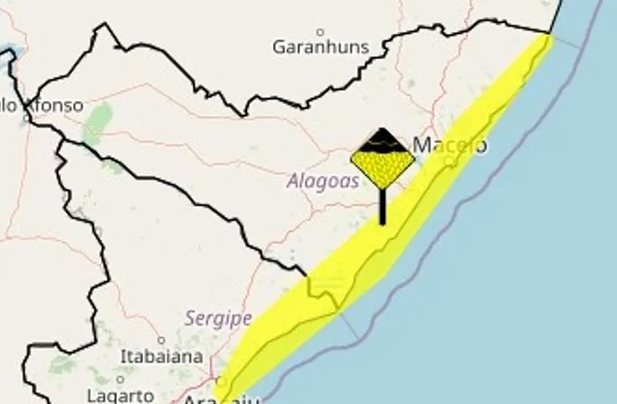 O Instituto Nacional de Meteorologia (Inmet) emitiu um novo alerta amarelo (de perigo potencial) de acumulado de chuvas, com início nesta segunda-feira (8), às 15h, para Maceió e 21 municípios de Alagoas. O aviso é válido até terça-feira (9), às 10h.