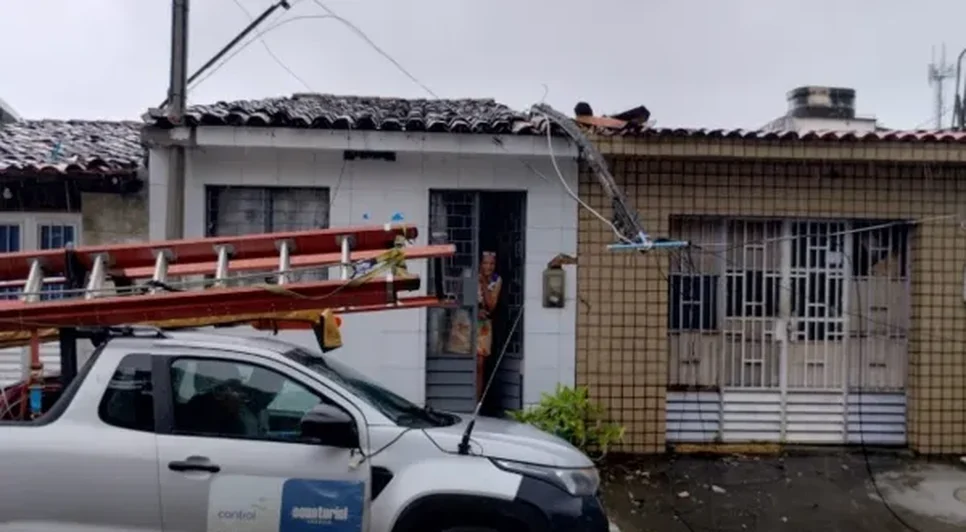 "Toda vez que esse caminhão-baú, que é bem alto, vem despejar material nestes prédios que estão construindo aqui, acontece isso. Ontem, inclusive, tava faltando energia na área por conta do acidente. E, até agora, continuamos sem energia. Estamos com medo de encostar na parede, porque fica passando corrente, além da chuva, que piora tudo", contou dona Loreta Feitosa, moradora da região.