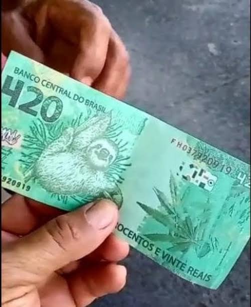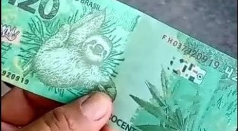 PM apreende nota de R$ 420 com estampa de bicho-preguiça e folha de maconha