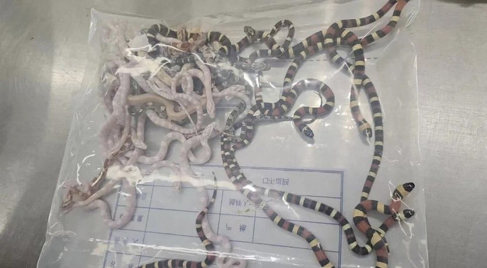 No total, os agentes resgataram 104 répteis, desde cobras-do-leite a cobras-do-milho, e também outras espécies não nativas do país. Atualmente, a China é consagrada como um dos maiores centros de tráficos de animais silvestres do mundo e, por isso, as autoridades têm sido mais duras para barrar o comércio ilegal.
