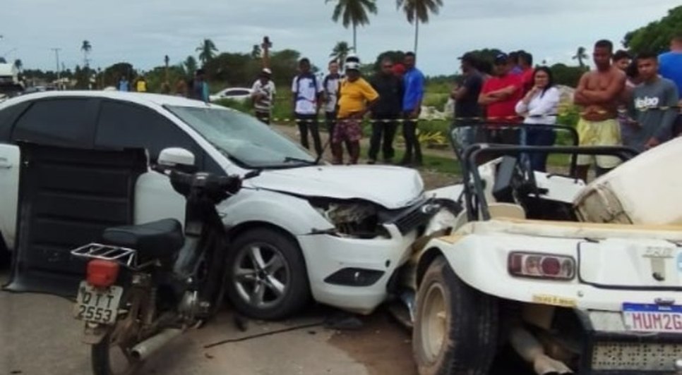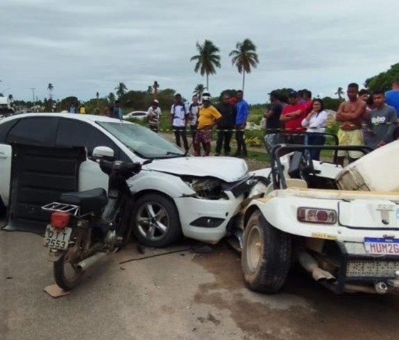 Turistas de MG ficam feridos em colisão entre carro, buggy e moto em Porto de Pedras