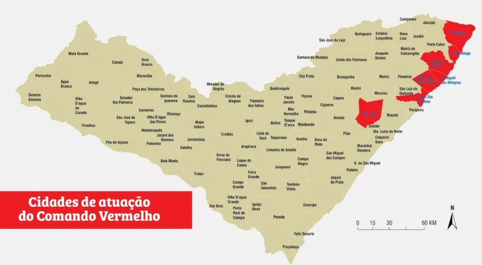 Segundo o delegado, gerentes da facção viajam de Maceió para o Rio de Janeiro de avião para receber ordens pessoalmente dos líderes. Ele explica que a facção tem uma hierarquia estabelecida, tal qual uma empresa. Encabeçada por líderes nacionais, o CV tem ainda líderes para cada uma das cinco regiões e líderes estaduais, que em Alagoas são Nem Catenga e Zé Dirceu. Dentro do estado, os gerentes das áreas que controlam os negócios.